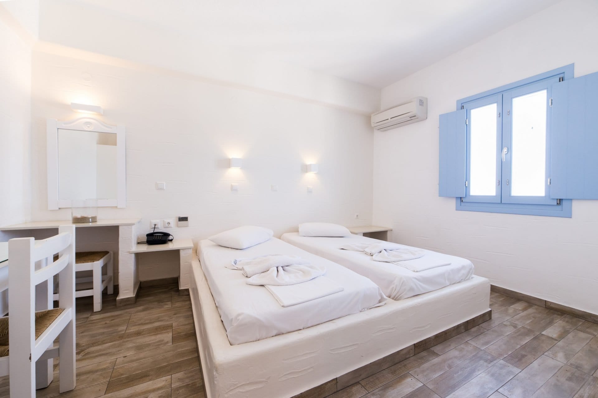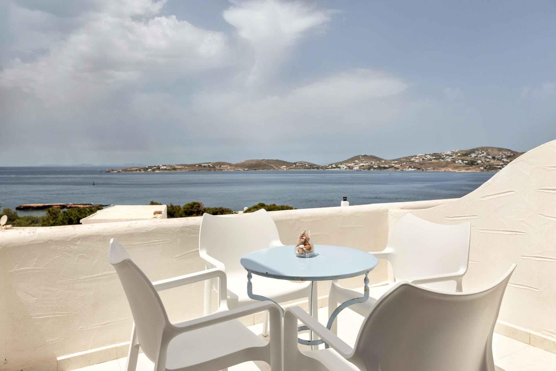- Panoramic view of the sea, the sunset and the bay of Parikia.